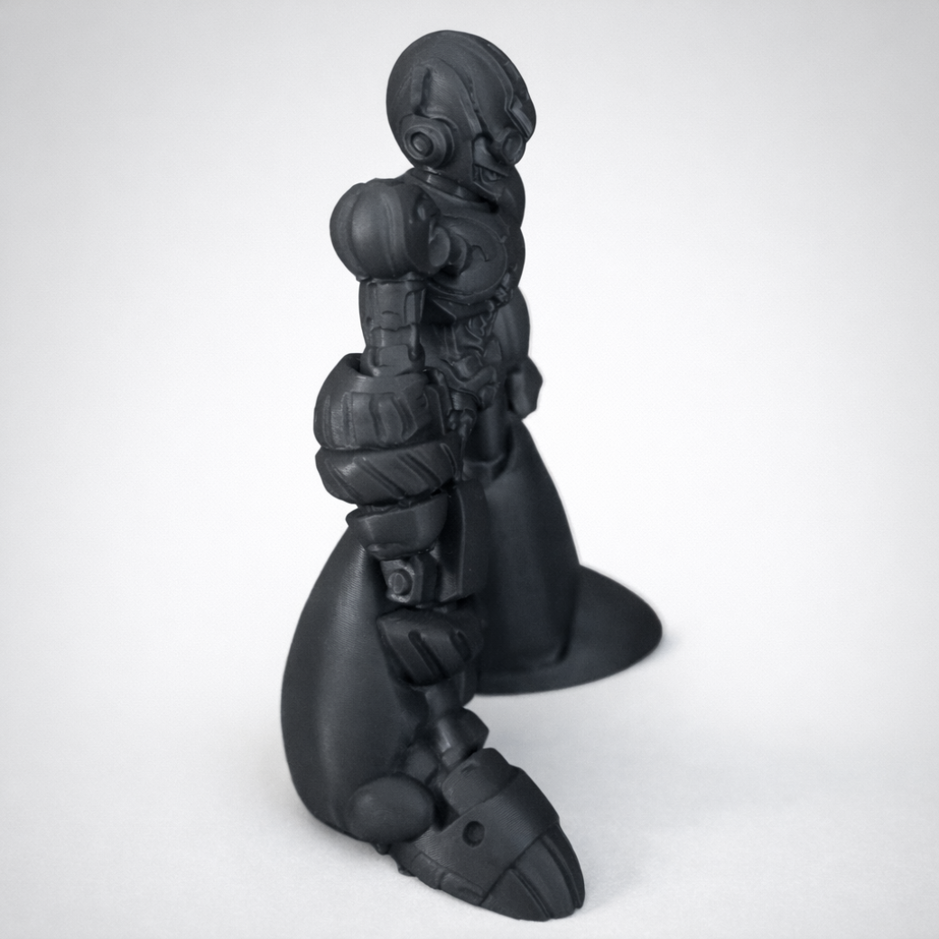 Standard PLA offers a matte, uniform surface that emphasizes clean geometry and consistent color. This material is well suited for collectors who want a stable display finish or plan to paint the x-buster cutaway figure themselves.
